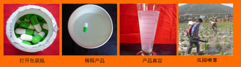 壯瓜蒂靈膠囊:每瓶80粒。可使各種瓜果防落,增香、增甜,膨大快。適用于西瓜、黃瓜、苦瓜、南瓜、絲瓜、冬瓜、西葫蘆、佛手瓜、甜瓜、哈密瓜、瓜蔞等。 每15公斤液體中加入本膠囊1粒,也可以加多粒,攪拌溶解后噴霧于植物表面。每畝瓜園每次用2粒,配60市斤水噴霧。間隔7—10天噴1次,連噴3次即可。用戶也可根據(jù)瓜體積膨大需要任意加大用量。本品PH值中性,遵照使用要求稀釋后噴霧,亦可以和各種農(nóng)藥及葉肥混合使用。稀釋液存放保質(zhì)期30天。