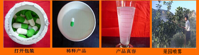 瓜果壯蒂靈:適用于蘋果、柑橘、龍眼、芒果、李子等各種水果,西瓜、冬瓜、南瓜、香瓜等瓜類。 每15公斤液體中加入本膠囊1粒,也可以加多粒,攪拌溶解后噴霧于植物表面。本品PH值中性,遵照使用要求稀釋后噴霧,亦可以和各種農(nóng)藥及葉肥混合使用。稀釋液存放保質(zhì)期30天。果樹一般在開花前、幼果期、果實膨大期各噴一次。共3次,每10顆膠囊可兌水150公斤,噴1畝成齡果園為宜。