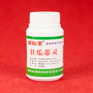 壯瓜蒂靈膠囊:每瓶80粒。可使各種瓜果防落,增香、增甜,膨大快。適用于西瓜、黃瓜、苦瓜、南瓜、絲瓜、冬瓜、西葫蘆、佛手瓜、甜瓜、哈密瓜、瓜蔞等。 每15公斤液體中加入本膠囊1粒,也可以加多粒,攪拌溶解后噴霧于植物表面。每畝瓜園每次用2粒,配60市斤水噴霧。間隔7—10天噴1次,連噴3次即可。用戶也可根據(jù)瓜體積膨大需要任意加大用量。本品PH值中性,遵照使用要求稀釋后噴霧,亦可以和各種農(nóng)藥及葉肥混合使用。稀釋液存放保質(zhì)期30天。
